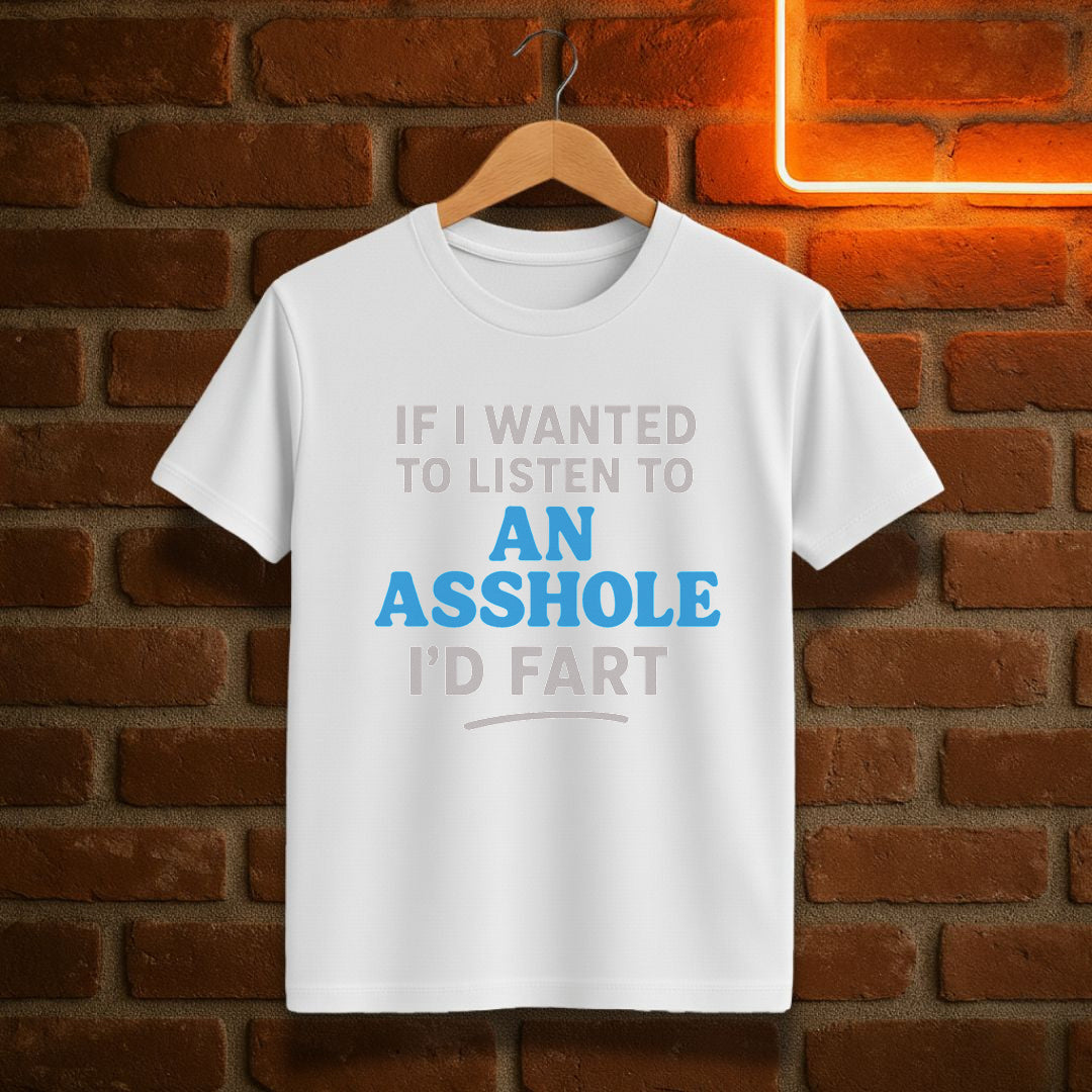 Gi folk noe å le av med denne brutalt ærlige T-skjorten! “If I Wanted to Listen to an Asshole, I’d Fart” kombinerer sarkasme, attitude og rå humor på én perfekt måte. Frekk, morsom og garantert en samtalestarter – denne passer for deg som ikke tar deg selv for høytidelig.